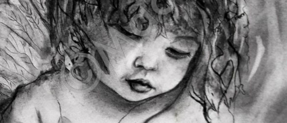 2016-LES SECRETS D’ANGEL-Fusain 65cmx50cm- angelot jouant