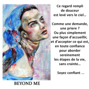 BEYOND ME – PORTRAIT FEMME A LA COIFFE BLEUE YEUX TOURNES VERS LE CIEL – MAONI – 2017 –