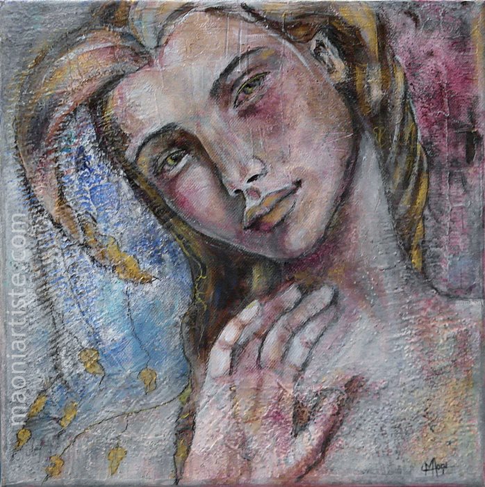 Cette peinture de femme divine se veut un moment de tendre délicatesse et de courage pour l’esprit délicat du féminin.